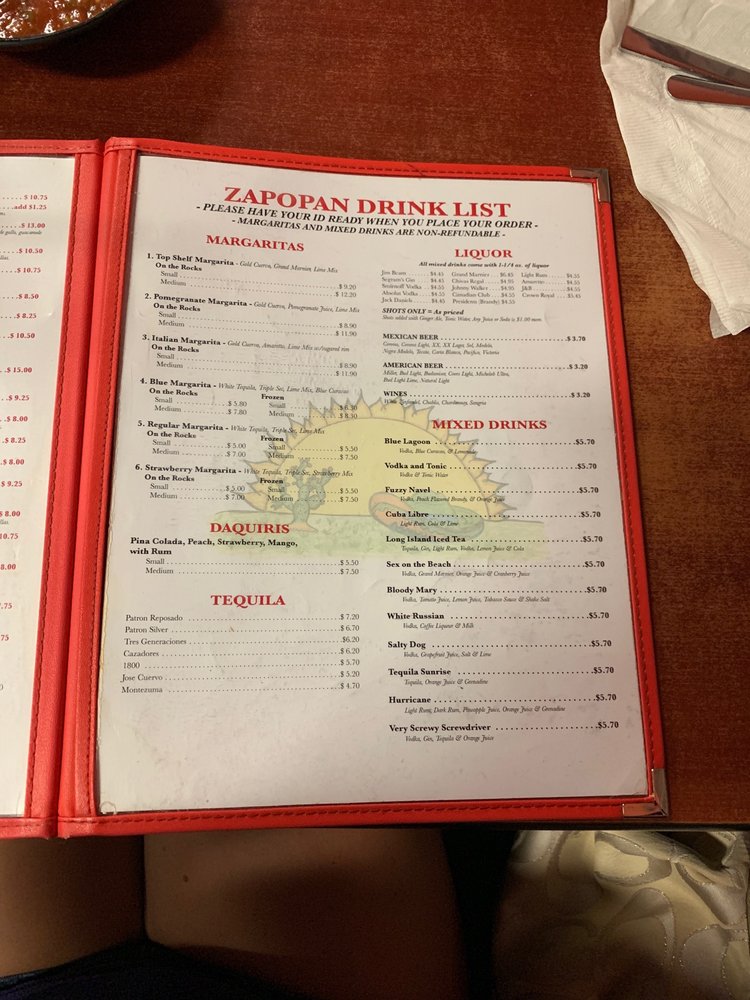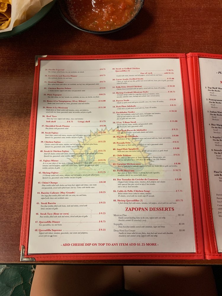 Zapopan Mexican Restaurant Menu (Update 2025)